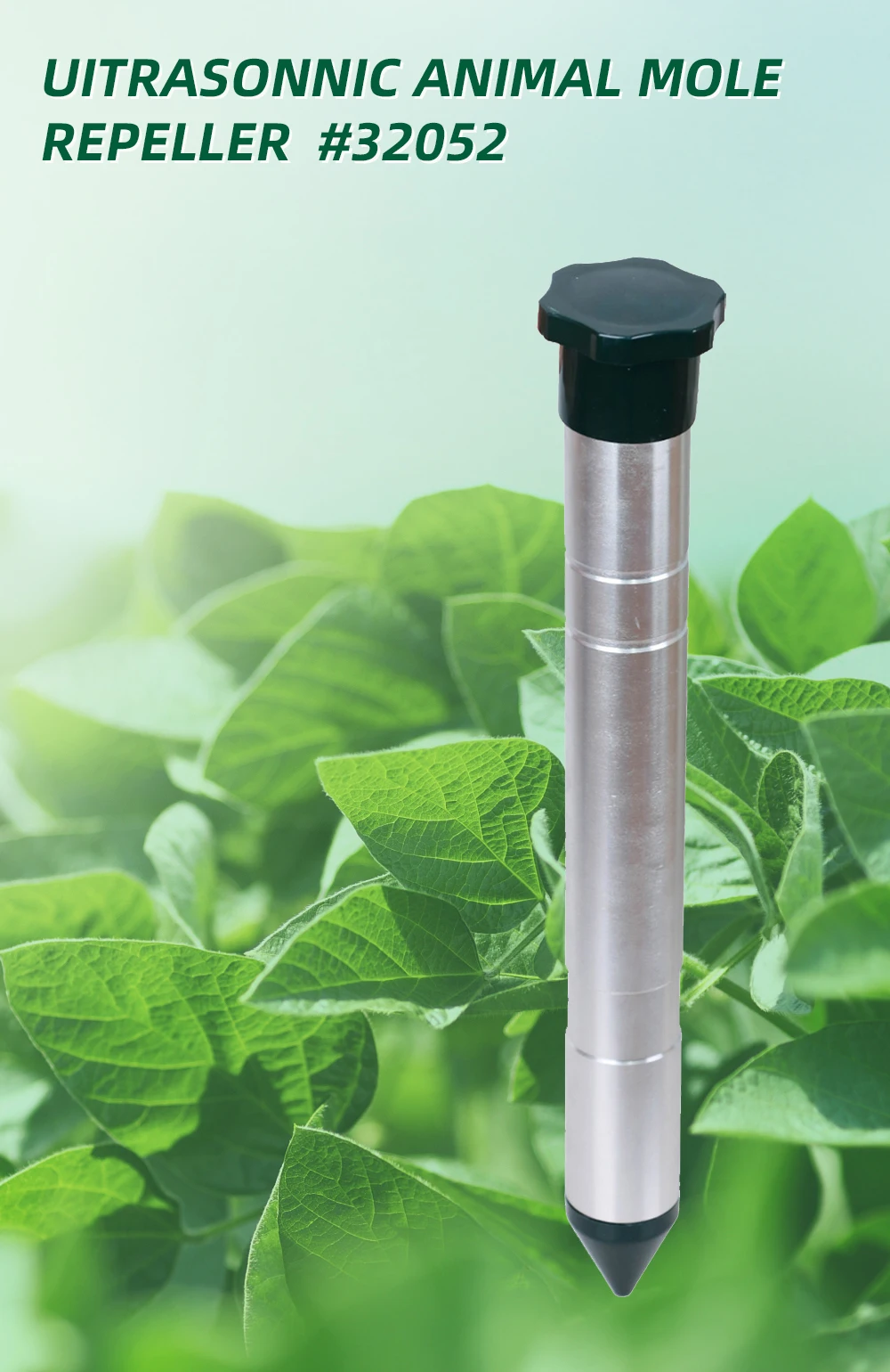 The mole repeller is to protect farmland, garden, lawn and other ground area from moles. It sends out electromagnetic oscillation wave, so that underground mole will be annoyed by the noise and move out of the protected area.